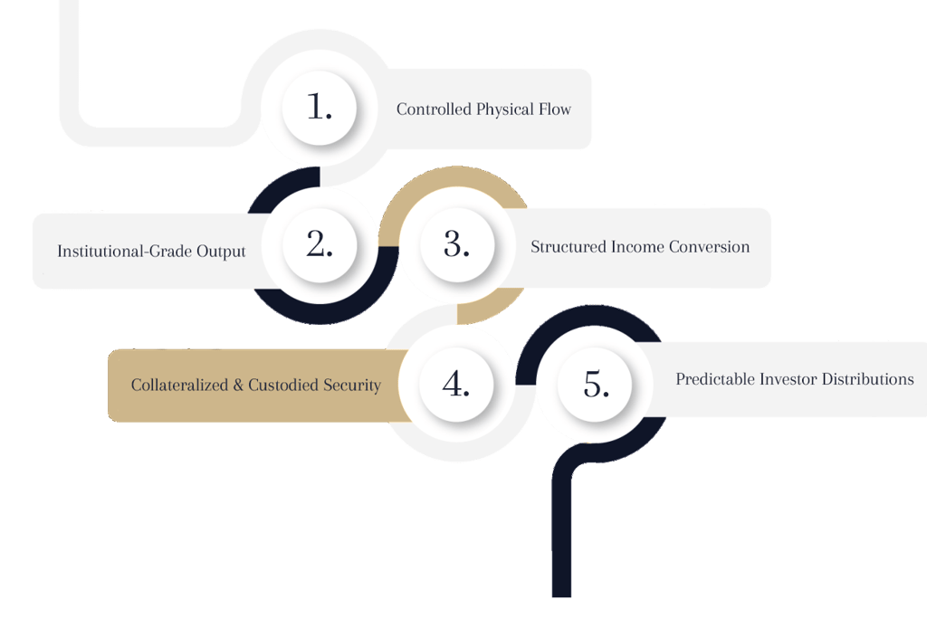 Our Gold Income Program is a closed, capacity-constrained offering built on a proprietary 10-year operational corridor. Through complete vertical control of the supply chain and a regulated SPV structure, we convert physical gold throughput into predictable, collateral-backed income.